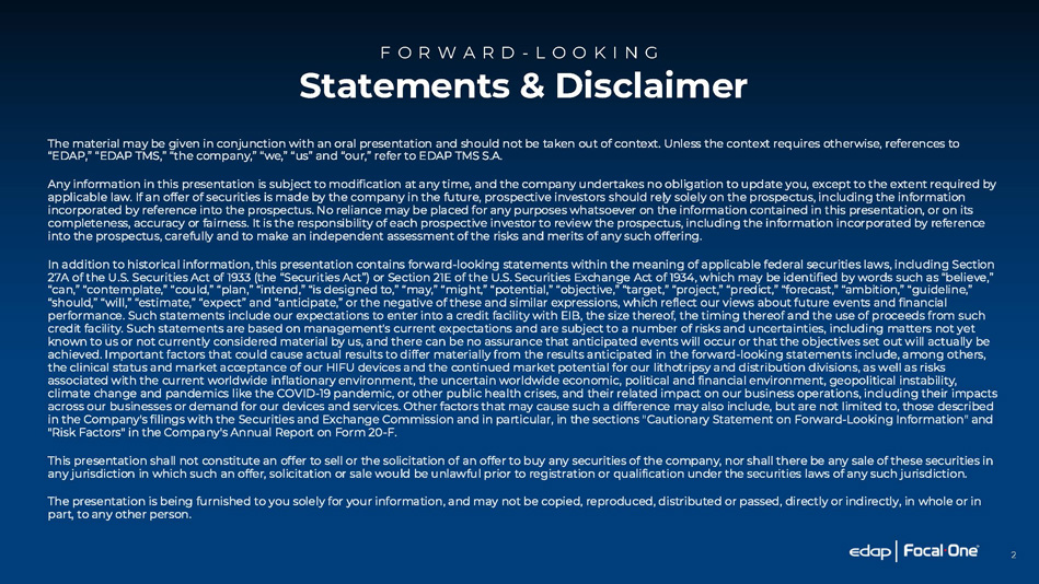 Statements & Disclaimer F O R W A R D - L O O K I N G 2