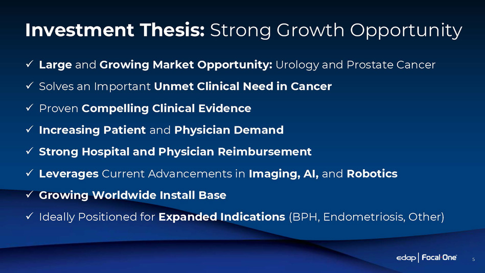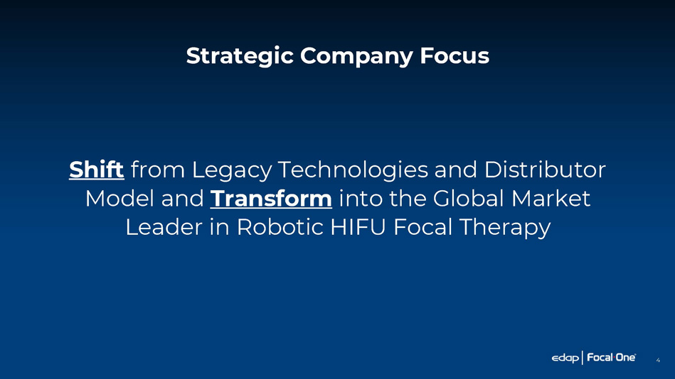 Strategic Company Focus 4 Shift from Legacy Technologies and Distributor Model and Transform into the Global Market Leader in Robotic HIFU Focal Therapy
