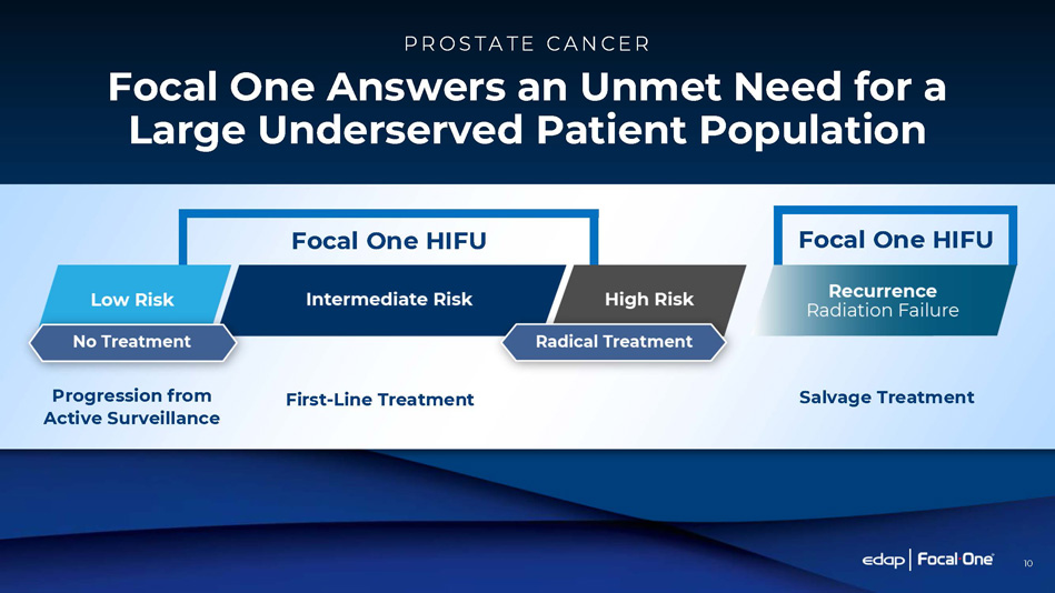 Focal One Answers an Unmet Need for a Large Underserved Patient Population P R O S TA TE C A N C E R Focal One HIFU Focal One HIFU 10 First - Line Treatment Progression from Active Surveillance Salvage Treatment