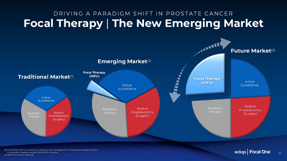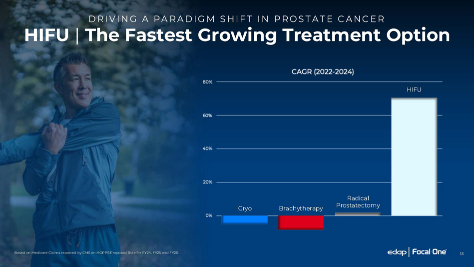12 D R I V I N G A P A R A D I G M S HI F T I N P R O S T A T E C A N C E R Focal Therapy | The New Emerging Market (1) As of 2013. Chen et al. National trends in the management of localized prostate cancer: A population - based analysis 2004 - 2013. Prostate. (2) Internal market estimate Active Surveillance Radical Prostatectomy (Surgery) Radiation Therapy Active Surveillance Radical Prostatectomy (Surgery) Radiation Therapy Focal Therapy (HIFU) Traditional Market (1) Emerging Market (2) Future Market (2) Focal Therapy (HIFU) Active Surveillance Radical Prostatectomy (Surgery) Radiation Therapy