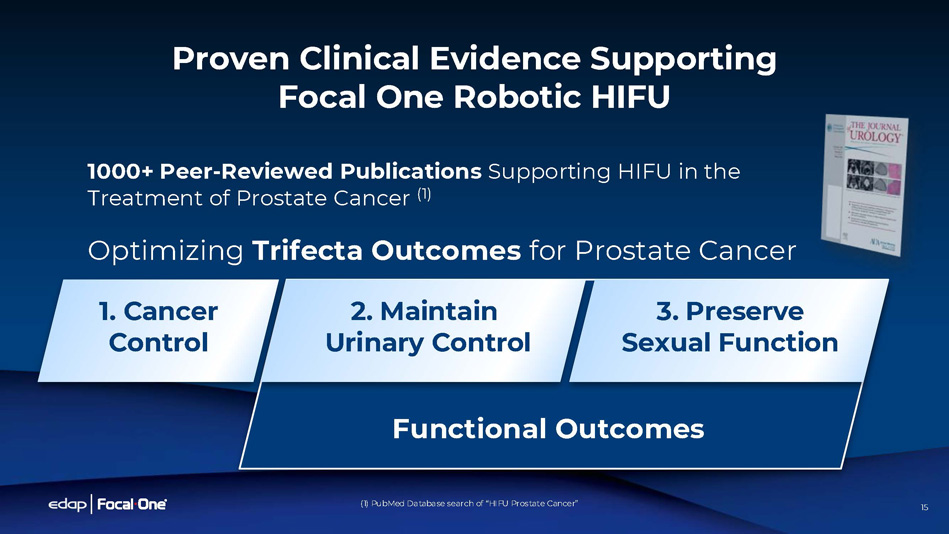 15 Proven Clinical Evidence Supporting Focal One Robotic HIFU 3. Preserve Sexual Function 2. Maintain Urinary Control 1. Cancer Control 1000+ Peer - Reviewed Publications Supporting HIFU in the Treatment of Prostate Cancer (1) Optimizing Trifecta Outcomes for Prostate Cancer Functional Outcomes (1) PubMed Database search of “HIFU Prostate Cancer” 15