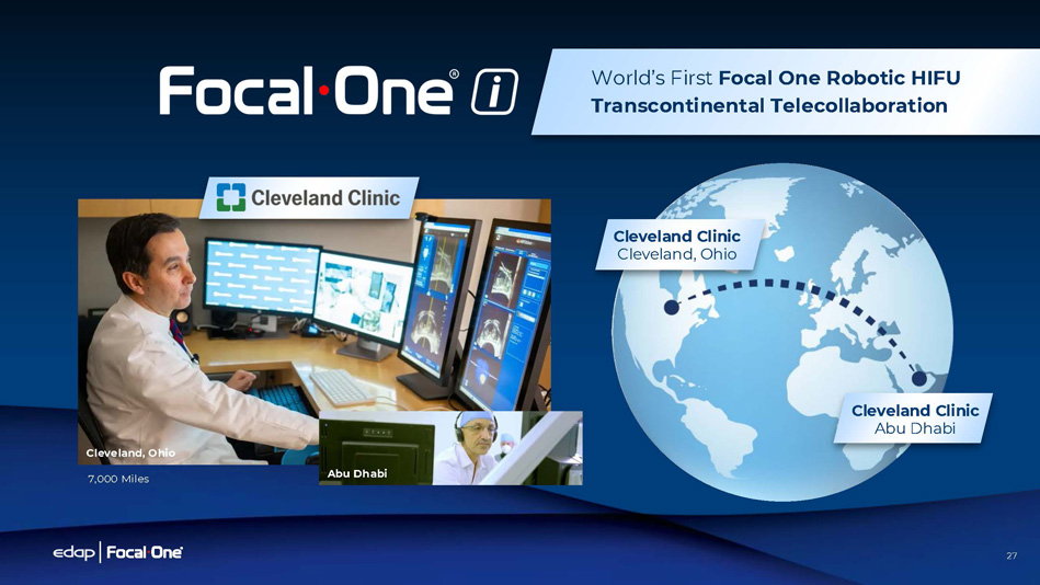 27 World’s First Focal One Robotic HIFU Transcontinental Telecollaboration Cleveland Clinic Cleveland, Ohio Cleveland Clinic Abu Dhabi Cleveland, Ohio Abu Dhabi 7,000 Miles 27