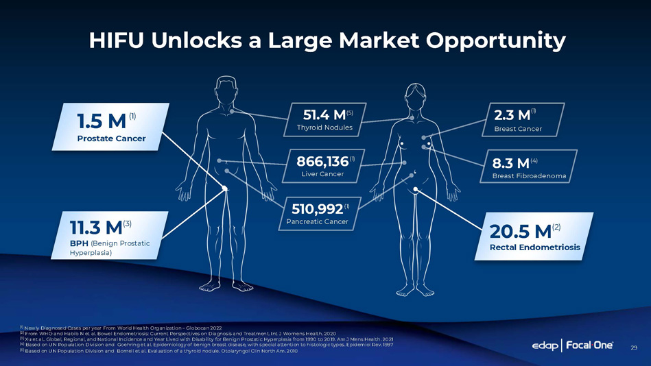 29 HIFU Unlocks a Large Market Opportunity (1) Newly Diagnosed Cases per year From World Health Organization – Globocan 2022 (2 ) From WHO and Habib N et al. Bowel Endometriosis: Current Perspectives on Diagnosis and Treatment. Int J Womens Health. 2020 (3 ) Xu et al.. Global, Regional, and National Incidence and Year Lived with Disability for Benign Prostatic Hyperplasia from 1990 to 2019. Am J Mens Health. 2021 (4) Based on UN Population Division and Goehring et al. Epidemiology of benign breast disease, with special attention to histologic types. Epidemiol Rev. 1997 (5 ) Based on UN Population Division and Bomeli et al. Evaluation of a thyroid nodule. Otolaryngol Clin North Am. 2010 20.5 M (2) Rectal Endometriosis 1.5 M Prostate Cancer (1) 11.3 M (3) BPH (Benign Prostatic Hyperplasia) 510,992 (1) Pancreatic Cancer 866,136 (1) Liver Cancer 51.4 M (5) Thyroid Nodules 2.3 M (1) Breast Cancer 8.3 M (4) Breast Fibroadenoma