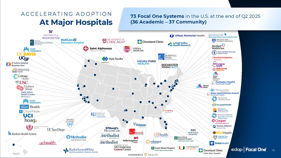 35 73 Focal One Systems in the U.S. at the end of Q2 2025 (36 Academic – 37 Community) A C C E L E R A TI N G A D O P T I O N At Major Hospitals Hawaii